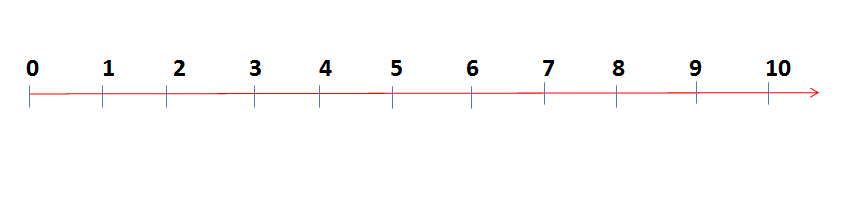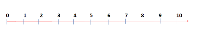 شعاع الاعداد هو عبارة عن شعاع من اليسار الى اليمين , سنضع الان الاعداد الطبيعية , يكون مرقم من الصفر باليسار ومن اليمين غير منتهي ..