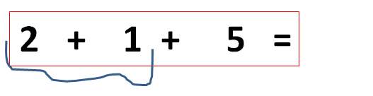 لجمع ثلاث اعداد مثلا 5 + 1 + 2